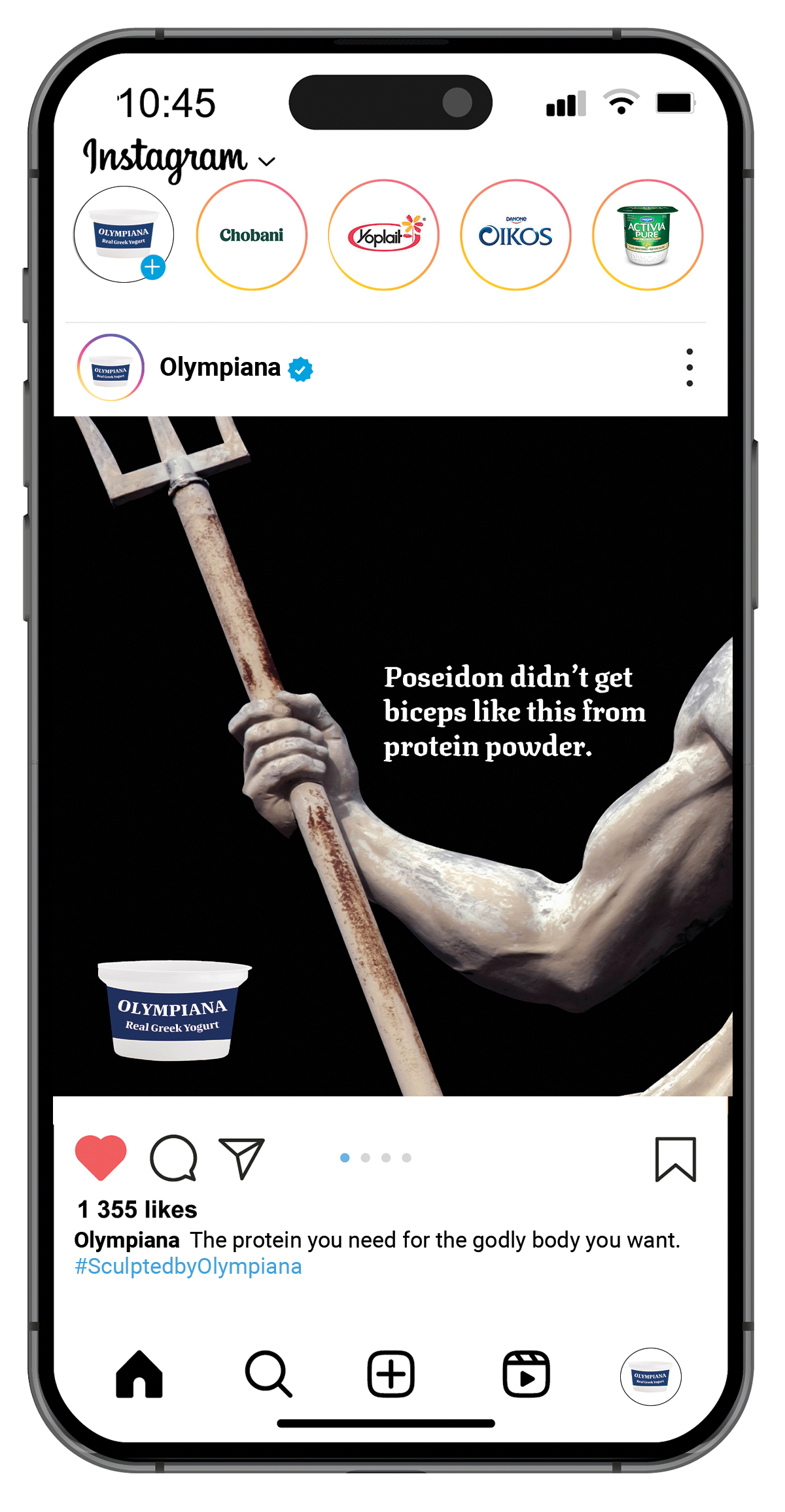 Instagram users can easily notice that the godly body they desire doesn’t start with protein powder, but with authentic Greek yogurt. To achieve the biceps like Poseidon, all they need to do is start their journey with Olympiana. Through Olympiana’s Instagram, users can access a link to learn more about the ingredients as well as where they can purchase their own.